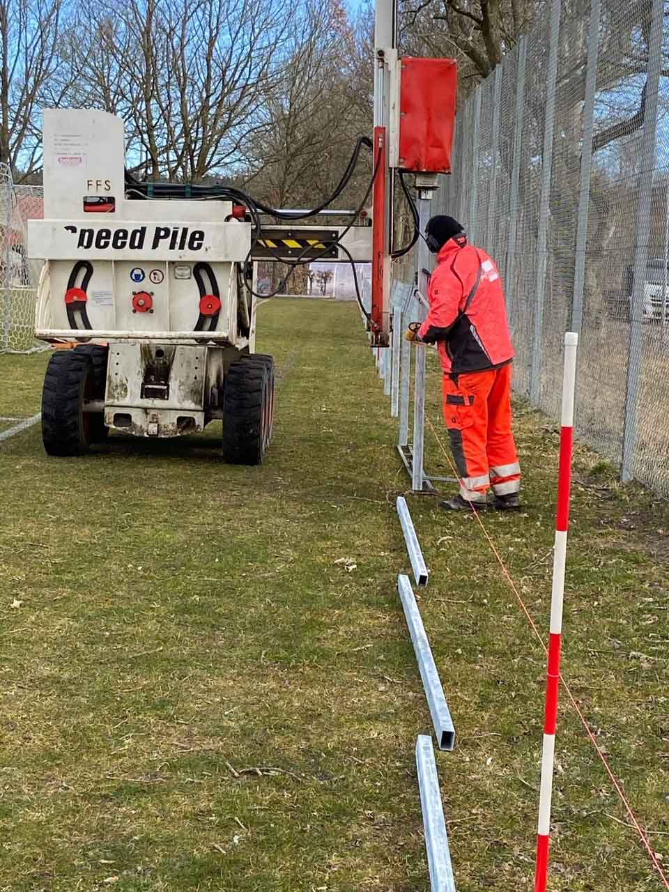 - Galvaniserede stolper og mål i samme farve som hegnet. Stolperne er støbt i jorden.