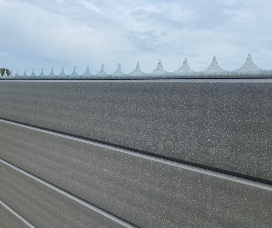 For at løfte sikringen til næste sikkerhedsniveau blev hegnet afsluttet med galvaniserede hajtænder i toppen. Det sender et klart signal om, at her er der ikke fri adgang – og samtidig fungerer det som en præventiv sikring mod forsøg på overklatring.