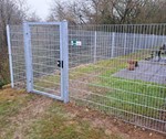 I dag står området indhegnet med strong panelhegn – en af de stærkeste og mest holdbare hegnstyper på markedet – og tre sikre låger, alle udstyret med 3-punkts håndtag. Det giver høj kontrol og sikrer både brugere og personale.
