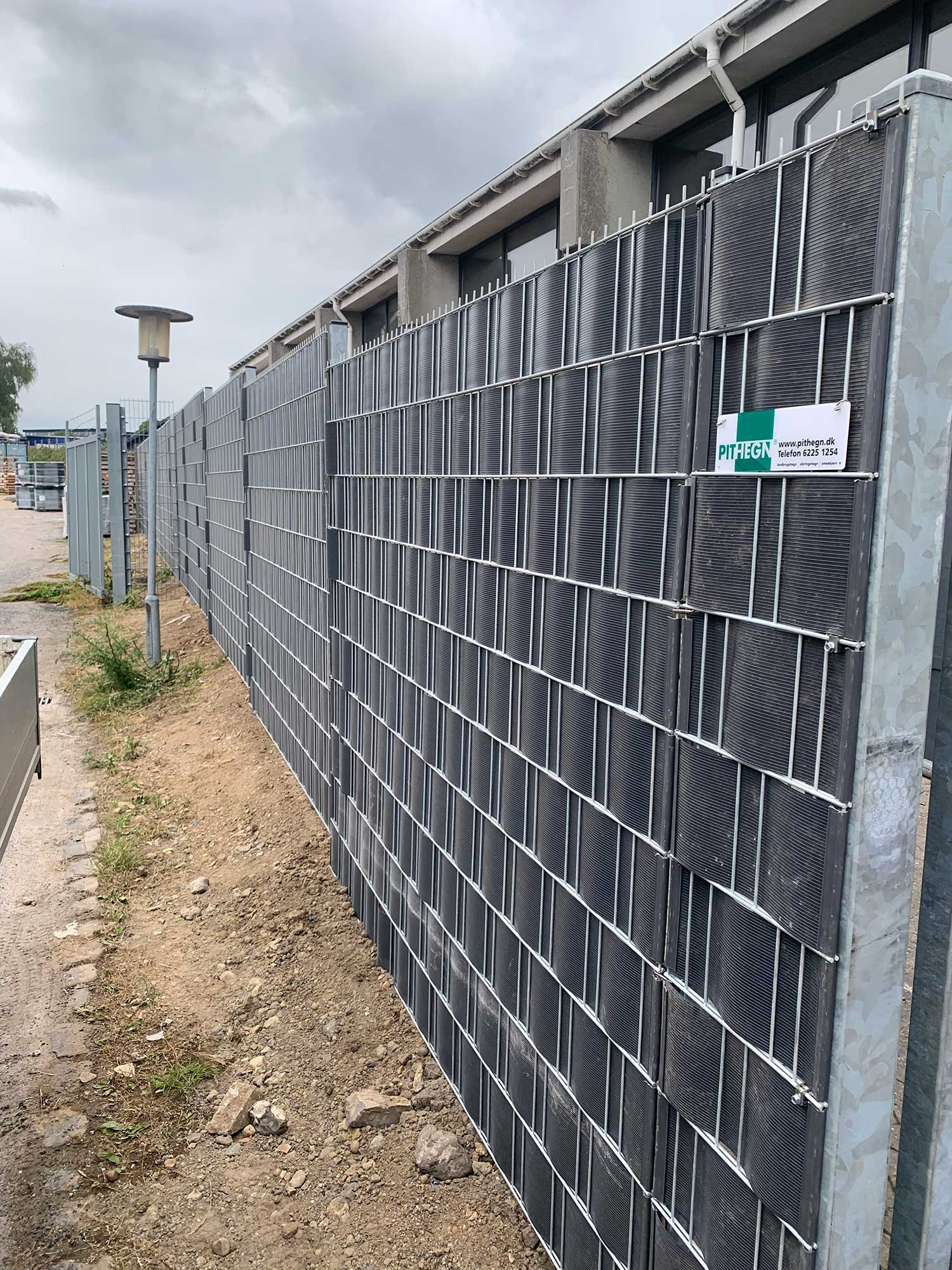 Vi opsætter ofte panelhegn, da det er et af de stærkeste hegnstyper vi har til virksomheder. Det er dog ikke ofte, at vi laver en løsning med panelhegn, hvor vi også sørger for total afskærmning. Det har vi gjort her !