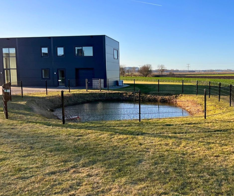 I forhold til sikkerheden på en arbejdsplads og de krav, der stilles til at være arbejdsgiver, faldt beslutningen her i Aalborg på at hegne omkring det vandhul, der er en del af virksomhedens grønne arealer.