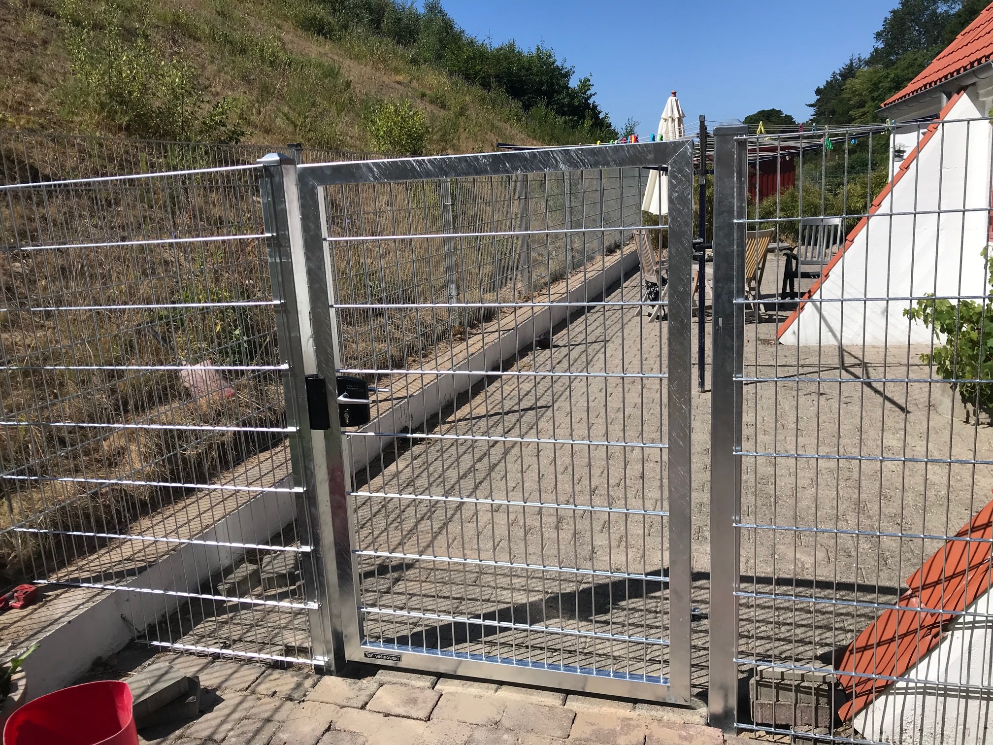Vi viser her en flot og holdbar PIT Hegn indhegning af en privat have opsat i sommeren 2018 hos en privat kunde. Han ønskede netop ikke, at hans hunde løb ud, og det er der helt styr på nu.