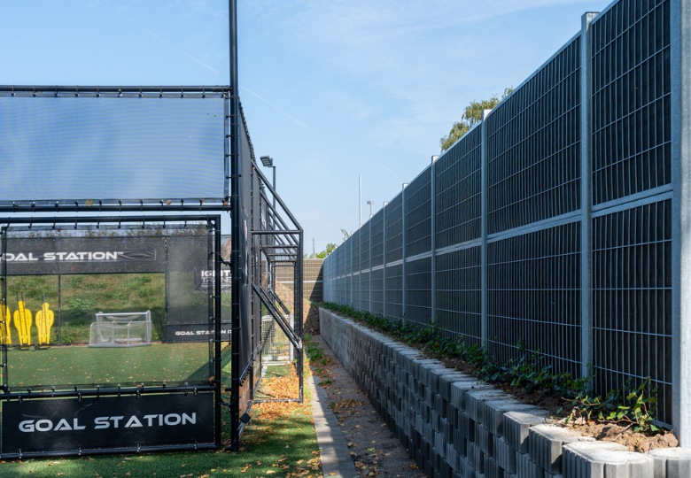 Vi kan altid se på eksisterende eller nye løsninger med friske øjne, for der opstår jo løbende nye behov. Vi har fornylig opsat denne fine løsning i Aarhus med det ene formål: ekstra dæmpning af lyden omkring og bagved boldbanen. Støjhegnet erstatter en tidligere jordvold, som beskyttede naboarealet imod støj og indkig til boldbaneområdet. Jordvolden måtte vige pladsen for nye P-pladser, og derfor valgte man en støjmur, så både indkig og ro på området fortsat kunne sikres.